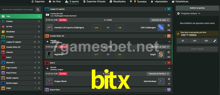 O bitx oferece uma grande seleção de opções de apostas em e-sports com probabilidades competitivas